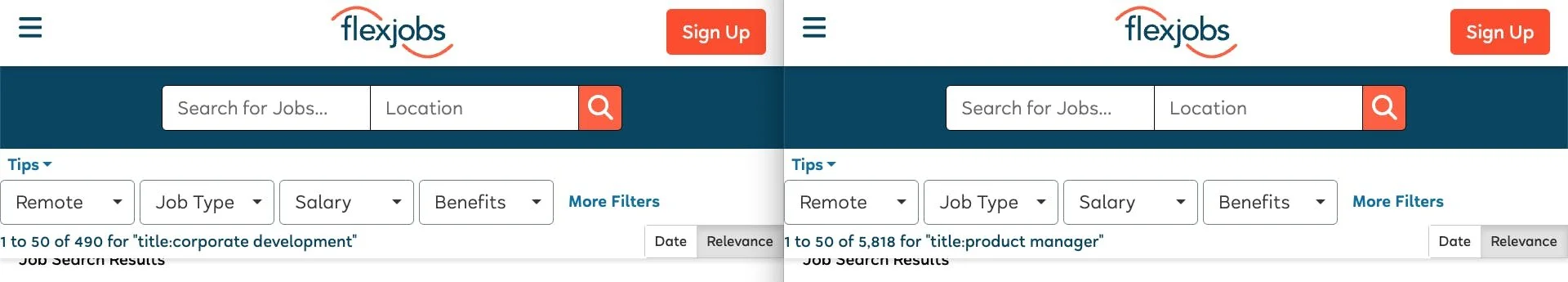 And that allows you to run comparative searches like measuring how many CorpDev jobs are available vs. PM: